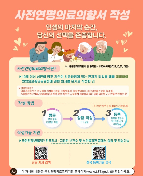 - 의료진과 상담: 의료진과 상담하여 연명치료 거부에 대한 충분한 설명을 듣고, 궁금한 점을 해결합니다.