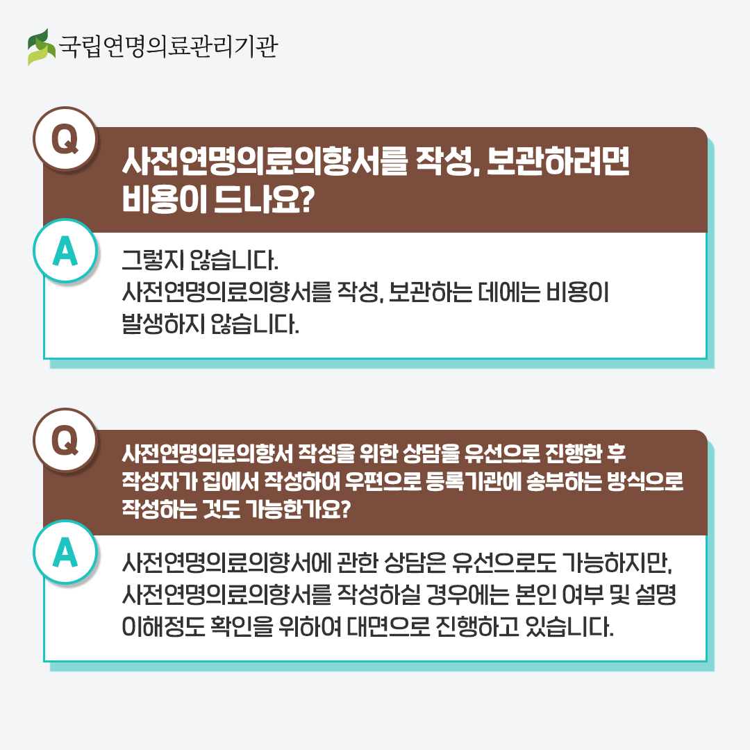 Q. 사전연명의료의향서를 작성하고 보관하는 데 비용이 발생하나요?