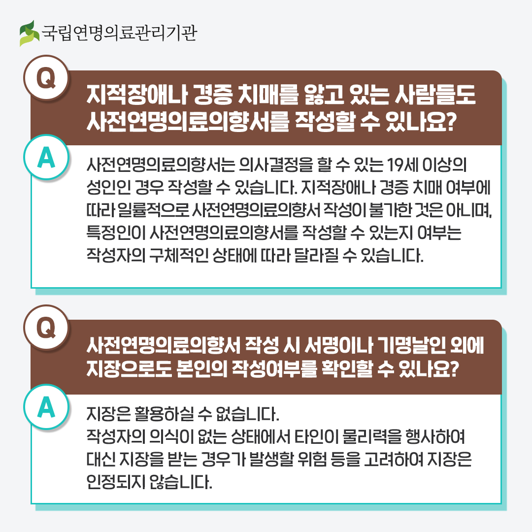 Q. 지적장애나 경증 치매 환자도 사전연명의료의향서를 작성할 수 있나요?